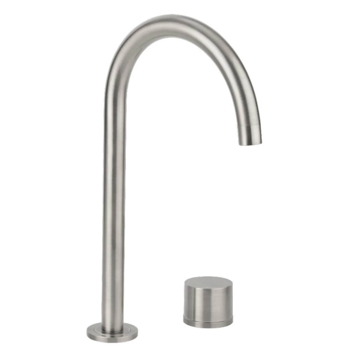 The Gooseneck Swivel Hob Spout is a statement piece for benches and baths. Its stunning arch shape enhances the aesthetic of its surroundings, while the 360-degree swivel spout offers superb functionality.