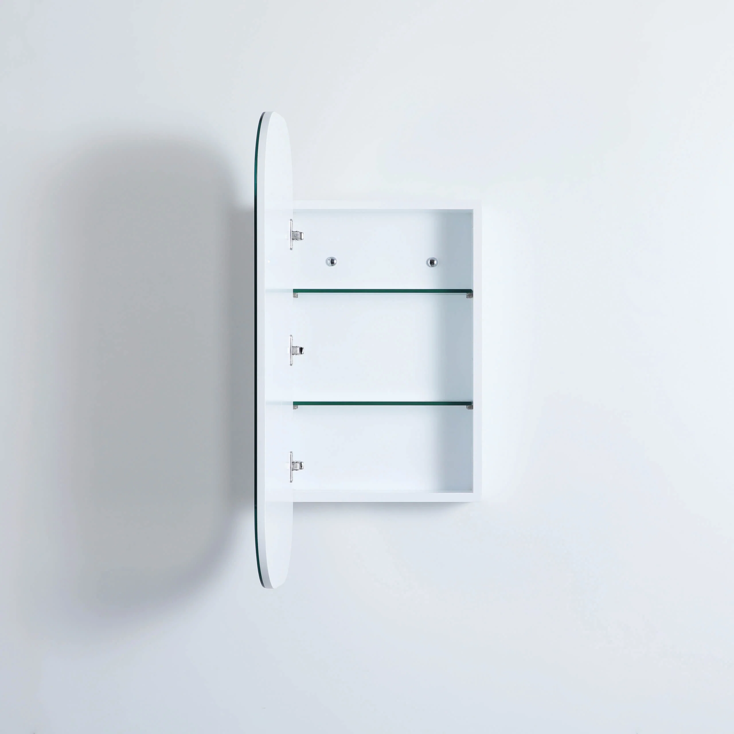 The Opal Round Edge Mirror Cabinet is the newest style in Mirror Cabinets to suit the modern bathroom. Available in 2 different sizes, the Opal Mirror Cabinet is a fast-selling solution to bathroom storage while enhancing your space's aesthetic.